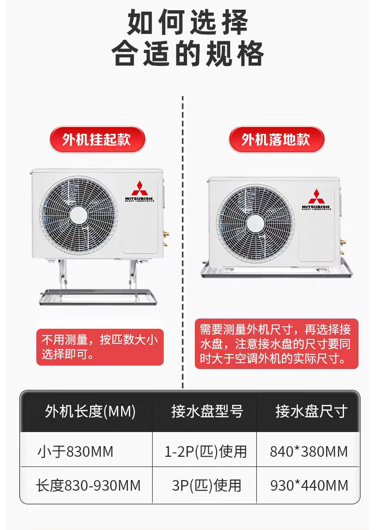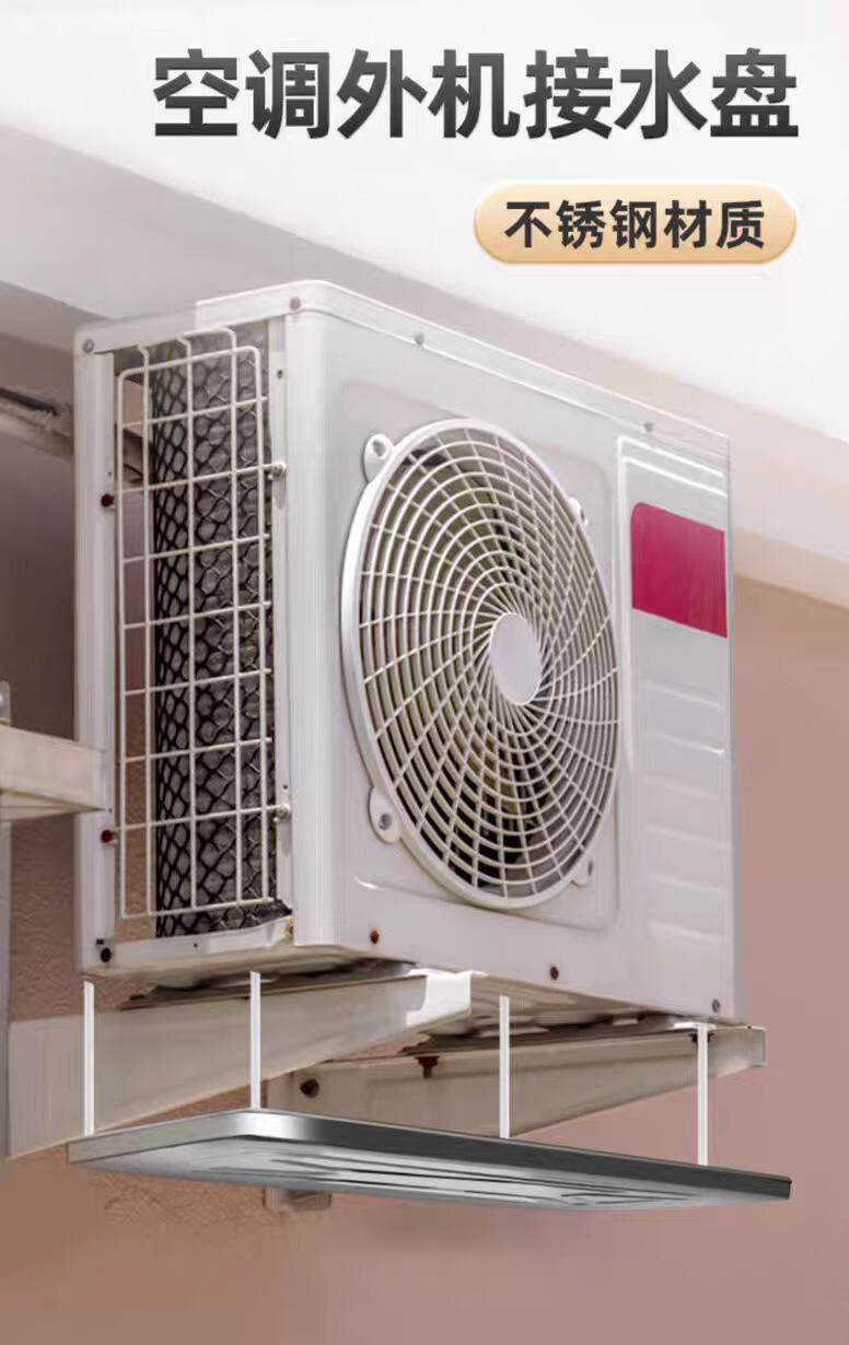 当天速发 空调外机接水盘不锈钢滴水托盘通用型滴水漏水接水神器 1-2匹 不锈钢一体成型+排水配件