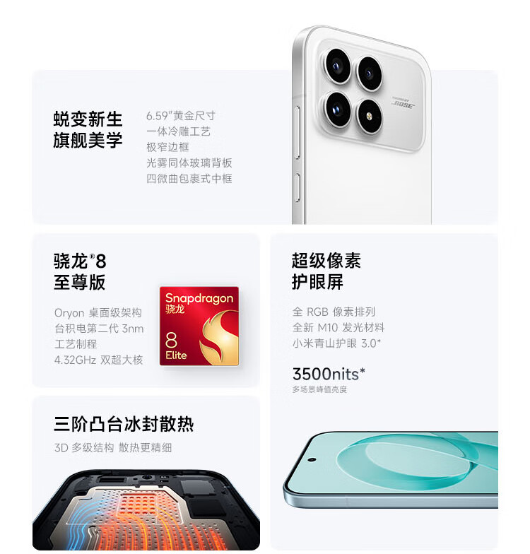商品名称:小米REDMI K90 骁龙®8至尊版 7100mAh大电池 青山护眼 白色 12GB+256GB 红米5G手机