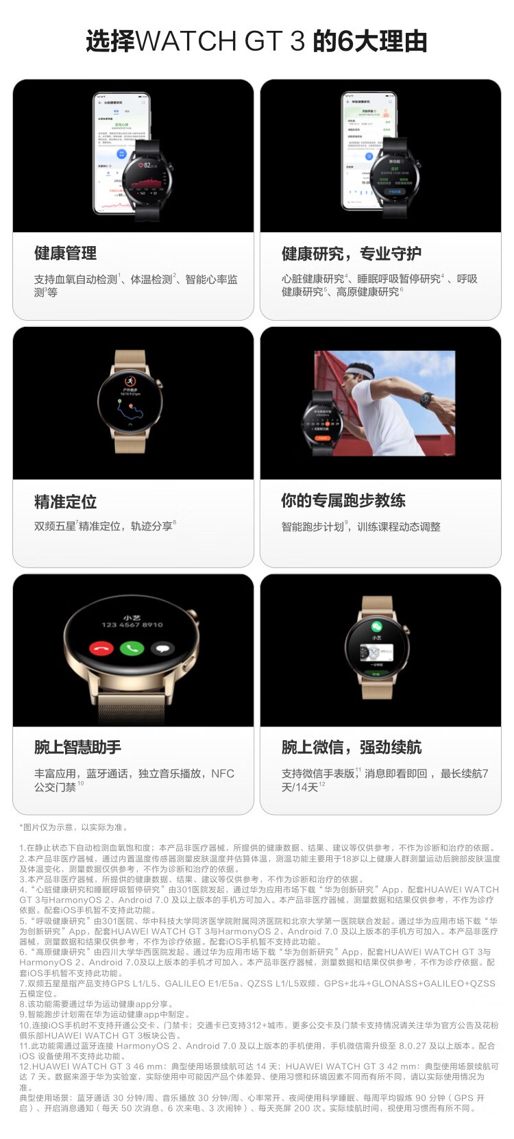 商品名称:华为HUAWEI WATCH GT 3 黑色活力款 46mm表盘 华为手表 运动智能手表 血氧自动检测 智能心率监测 腕上微信