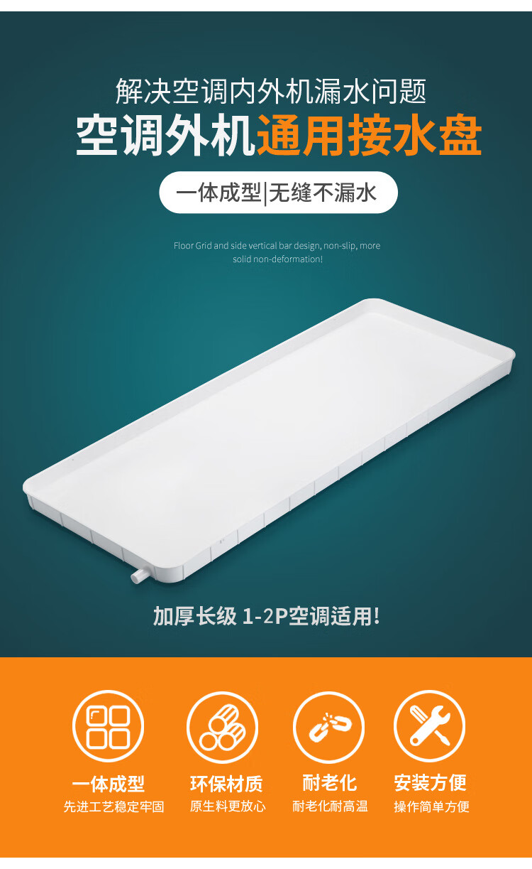 昙蓓漫空调外机接水盘带排水口室外空调漏水滴水槽神器积水通用托水盘 空调外机接水盘【1-2P适用】 配2米排水管+铁丝+卡箍