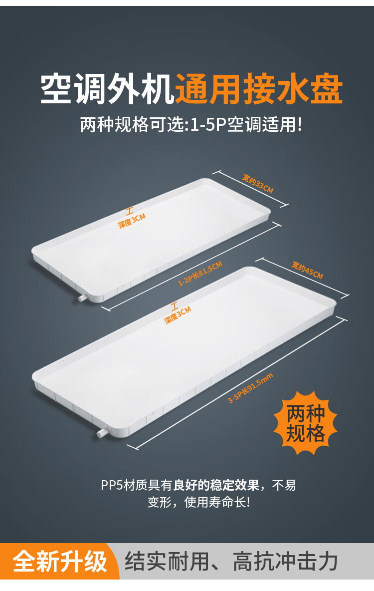 商品名称:昙蓓漫空调外机接水盘带排水口室外空调漏水滴水槽神器积水通用托水盘 空调外机接水盘 配2米排水管+铁丝+卡箍